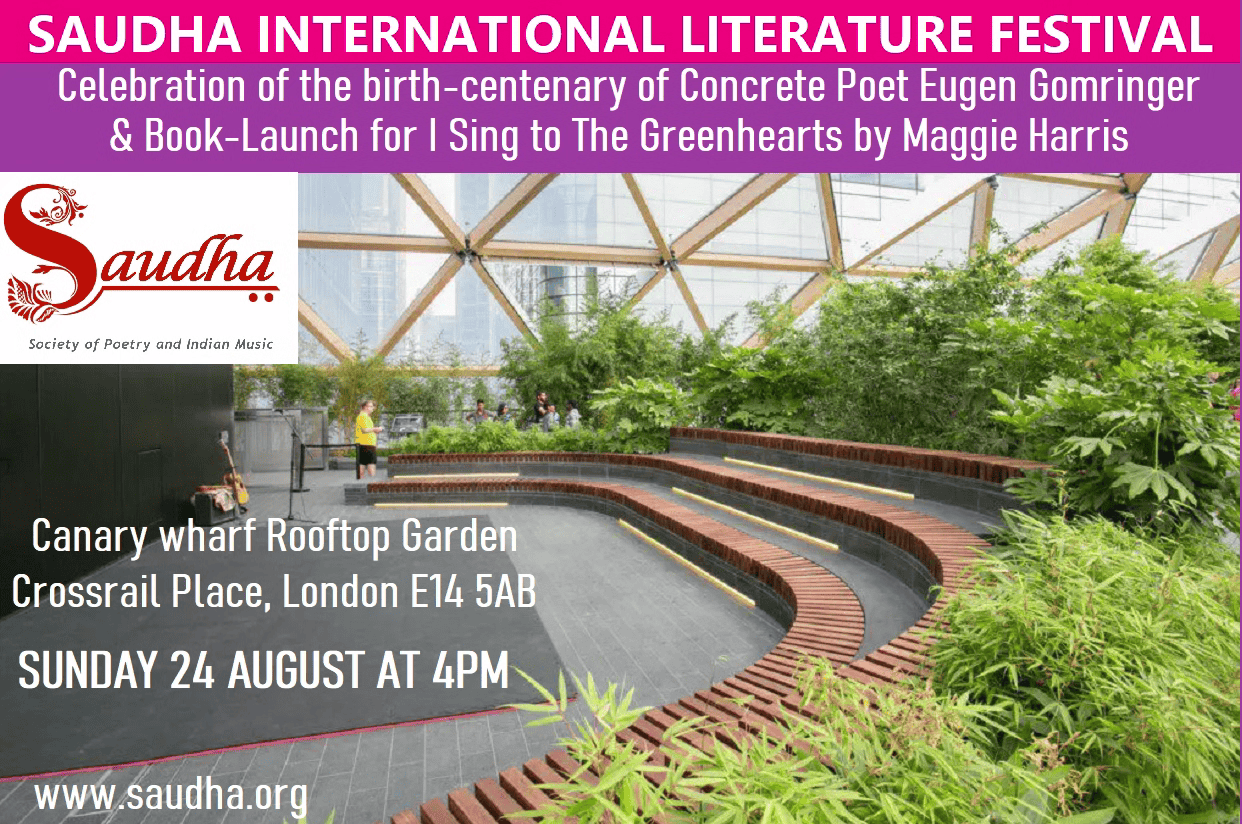 The session in Canary Wharf focuses on the birth-centenary celebration of BolivianSwiss concrete poet Eugen Gomringer through talks on concrete poetry, performances from his works and relevant music presentations.
