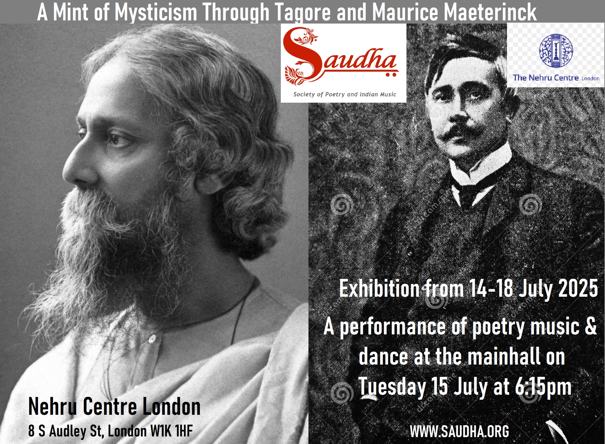 Curated by poet T M Ahmed Kaysher, the peformance/ art-production on Tueday 15 July at 18:15 is bringing a neo-metaphysical interpretation of mystic poems and metaphysical music compositions (A unique Indian mysticism) by the first non-European Nobel laureate Rabindranath Tagore and the first Belgian Nobel laureate in literature, who received Nobel prize just two years before Tagore, in 2011, Maurice Maeterlinck with both comparison and resemblance of Indian and European idea of metaphysical arts.